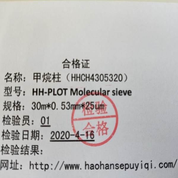 产品名称:HH-PLOT-Molecular sieve 2021甲烷毛细管色谱柱