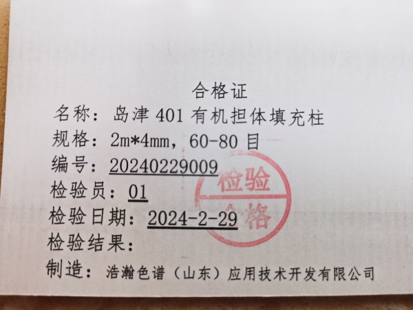 Application of 401 Organic Support Filling Column with Agilent 7820