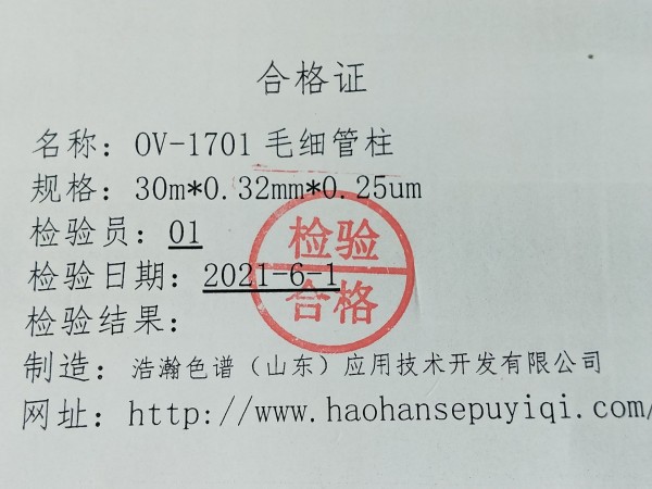 1.浩瀚色谱每根气相毛细管色谱柱在柱流失、灵敏度和柱效方面都经过严格的行业 规范测试,可为您提供的定性定量分析结果。