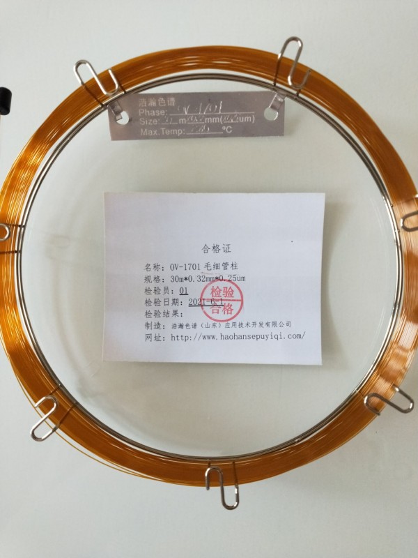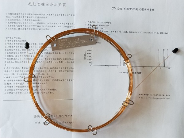 4.根据需要毛细管色谱柱均按照严格的 行业标准进行测试,并根据需求与实际应用,生产经过交联、键合处理可耐溶剂清洗的毛细管柱。