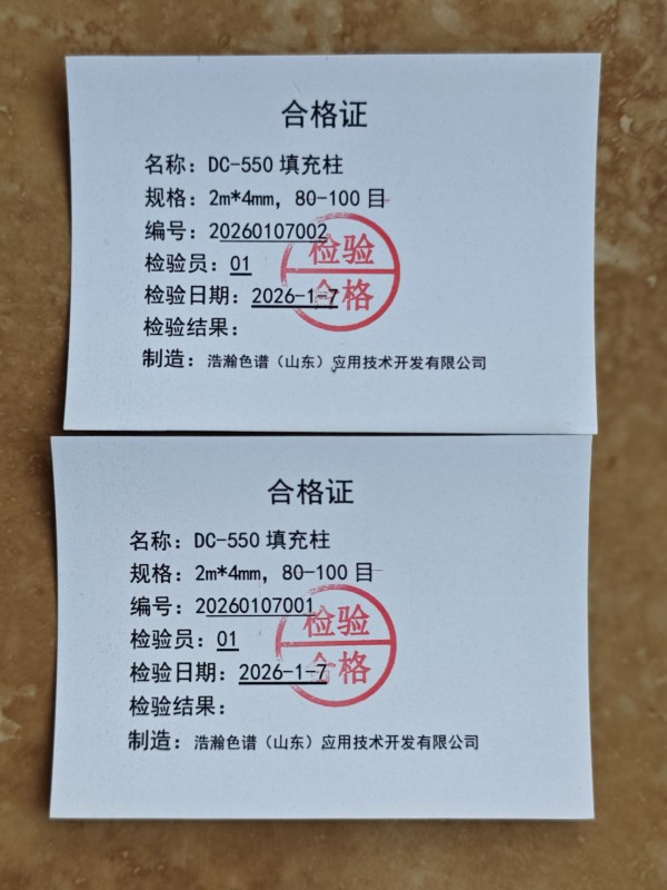 2m*4mm,, DC-550填充柱应用在赛默飞瓦里安安捷伦岛津的详细介绍